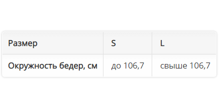 | Окружность бедер, см | до 106,7 | свыше 106,7 |