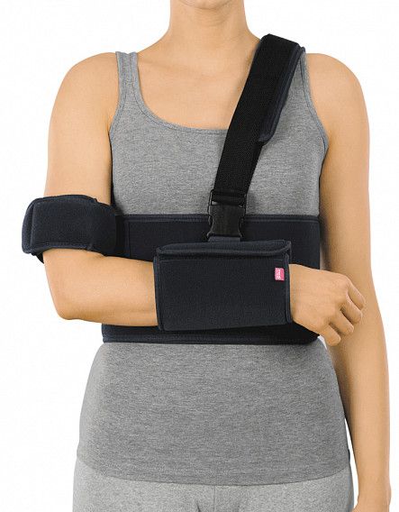 С помощью плечевого бандажа medi Arm fix можно реализовать надежную иммобилизацию верхней конечности и создать функциональный покой в области травмы. При правильном надевании головка плечевой кости центрируется относительно суставной впадины лопатки, что необходимо для достижения высоких функциональных результатов лечения. Иммобилизация и поддержка плечевого сустава уменьшает болевой синдром и способствует скорейшей реабилитации.