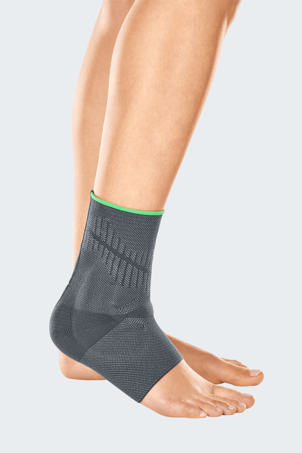 Массажное действие, оказываемое компрессионной тканью и эластичной вставкой, способствует улучшению кровообращения и рассасыванию гематом и отеков. Бандаж улучшает проприоцептивную чувствительность, за счет чего усиливается мышечная поддержка и стабилизируется голеностопный сустав