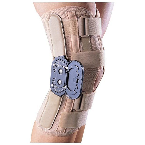 Металлические полицентрические шарниры и уплотненное кольцо обеспечивает полную фиксацию коленного сустава и правильное положение коленной чашечки, возможность регулировки диапазона движения сустава на 10°, 30°, 50°, 70°, 90° и 110°. Модель полностью разъемная. Показан при травмах крестообразной связки, подвывихе надколенника, после хирургического вмешательства.