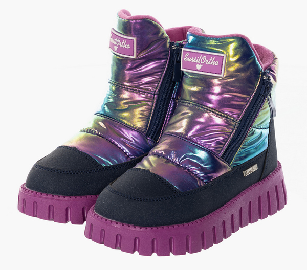 Сапоги зимние детские для девочек A45-2403 Sursil-Ortho для профилактики орто-заболеваний отличается уникальным дизайном и исключительным комфортом. Ее создают компании, опираясь на многолетний опыт работы. Модель имеет более плотную заднюю часть, достаточно жесткие берцы, которые сделаны из термопласта. Для производства зимней орто-обуви используют такие материалы как: кожа, мех и шерсть. Последние идут на изготовления подкладки и съемных утепленных стелек с анатомическим рельефом. Такую обувь легко надевать.
